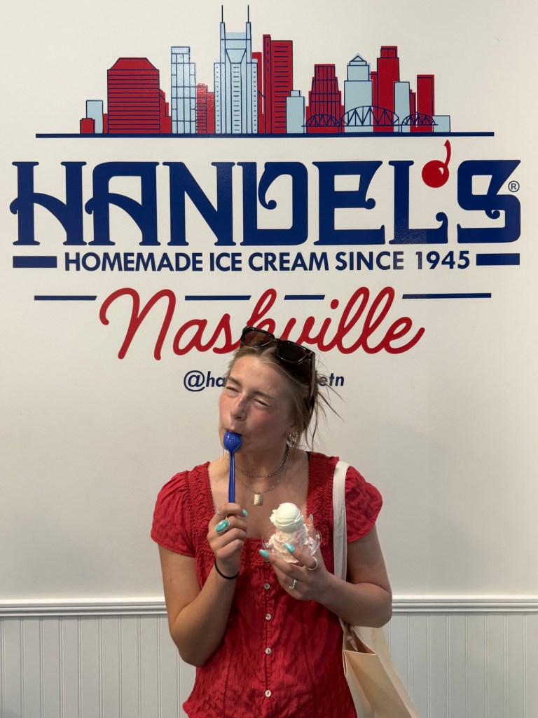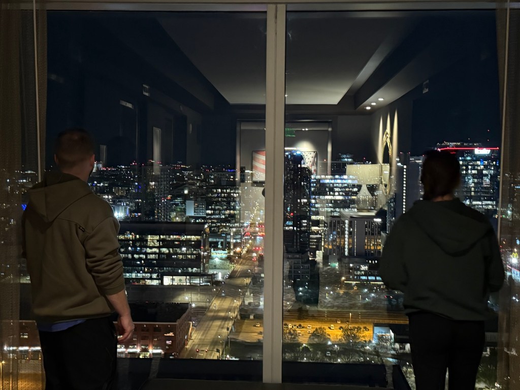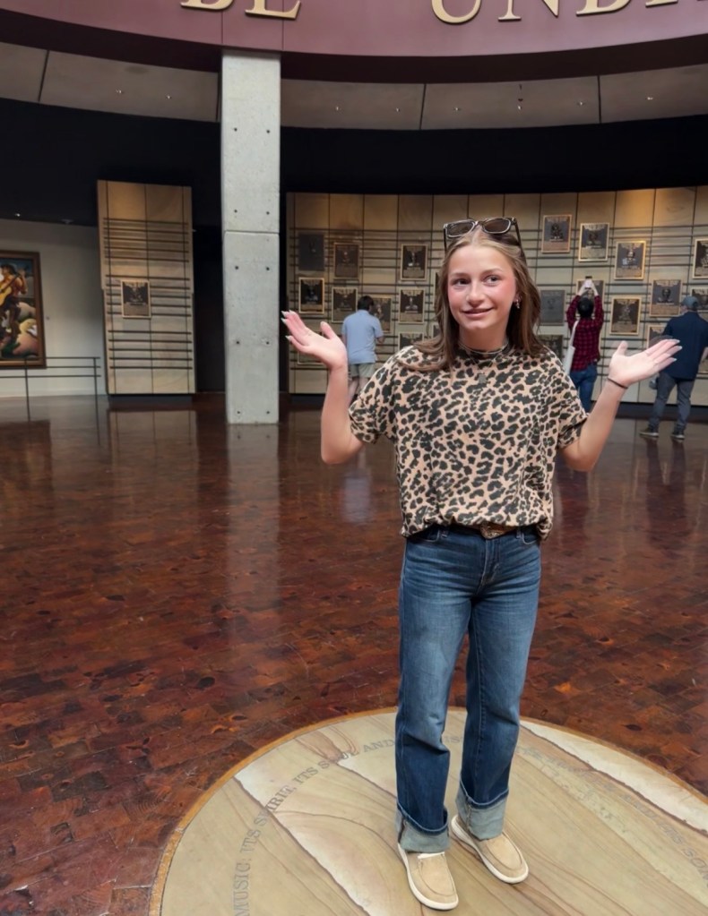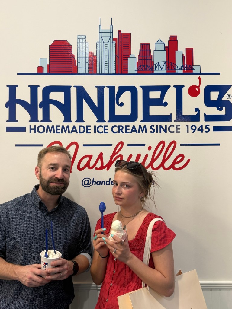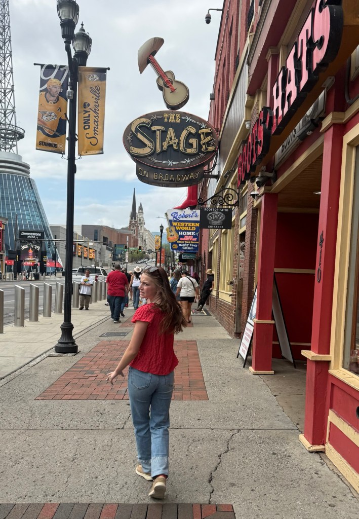 Day one’s full adventure continued with a morning walk down Broadway for a double-decker bus tour, taking in Nashville’s history and iconic sights. We refueled with lunch at Assembly Food Hall and did some shopping for Confirmation dresses and wedding guest outfits for Chris and Sara on Broadway and then in the Gulch neighborhood. We walked so much on Day 1 and were ready for a somewhat early night, watching the lights on Broadway from our 27th floor hotel room.